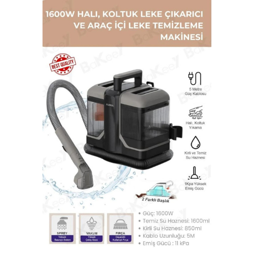 Bu güçlü cihaz, halılarınızda, koltuklarınızda ve araç içi döşemelerinizde en zorlu lekeleri bile kolayca çıkarır.