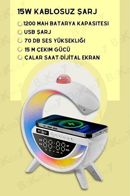 Dahili NFC şarjı, kablosuz şarj özelliği, ayarlanabilir parlaklık ayarları ve sezgisel çalar saati ile bu hoparlörün evinize rahatlık ve stil katacağından emin olabilirsiniz.