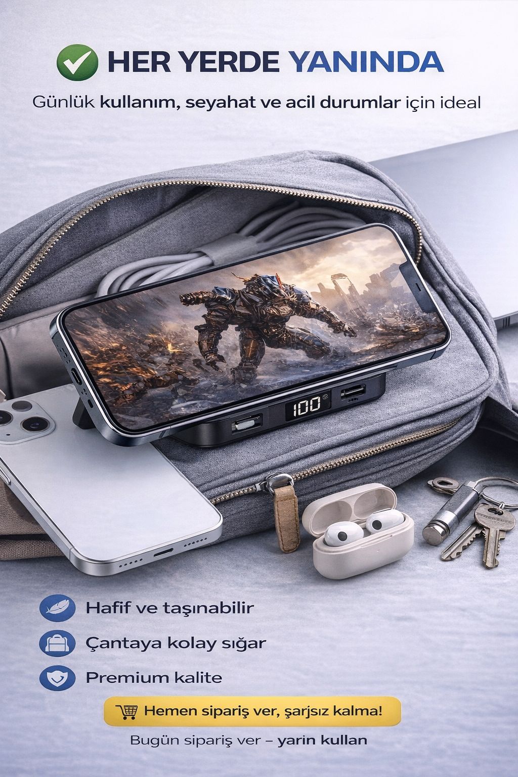 Günlük kullanım, seyahat ve iş hayatı için ideal powerbank modelidir.