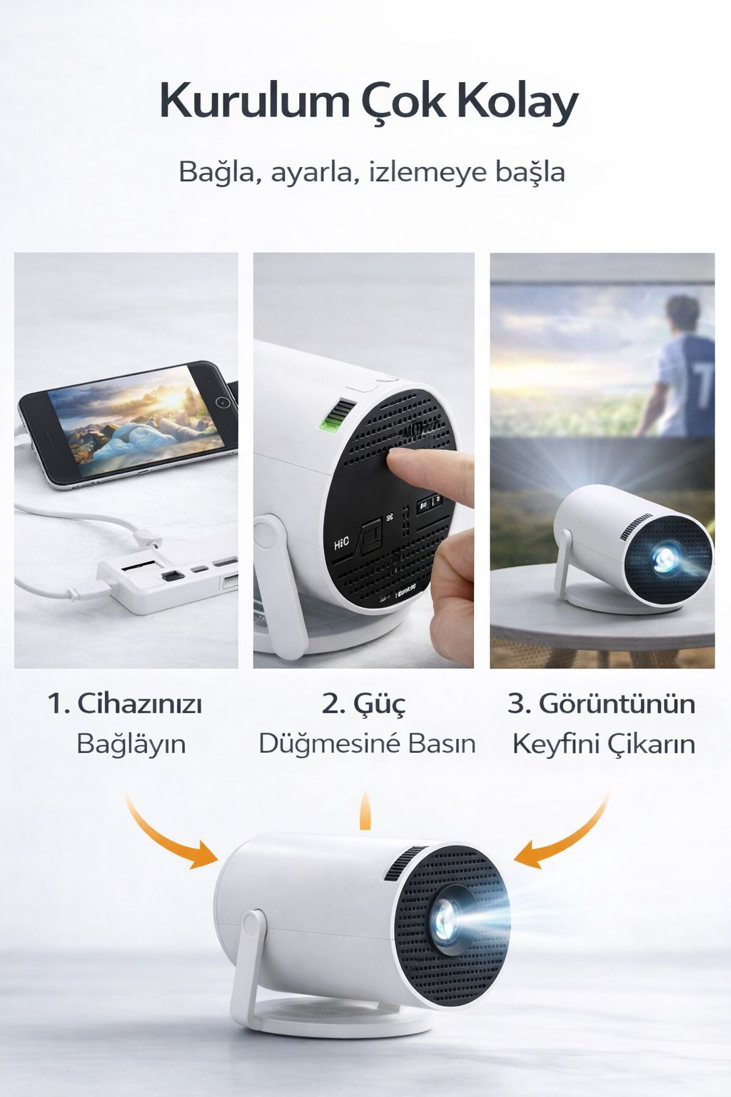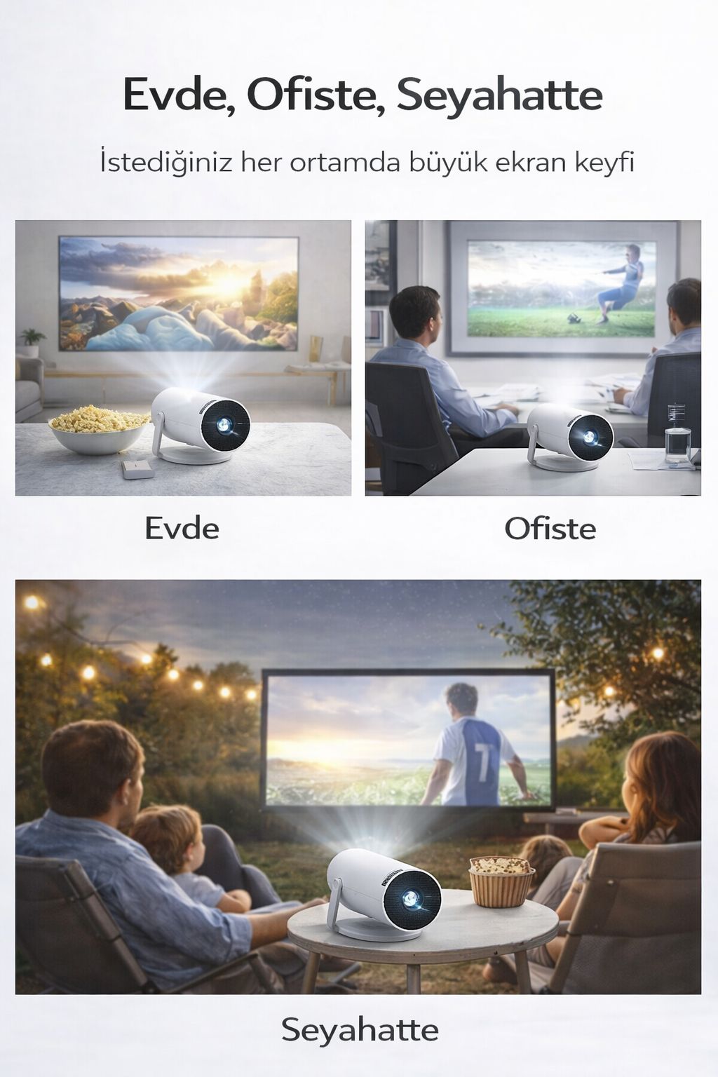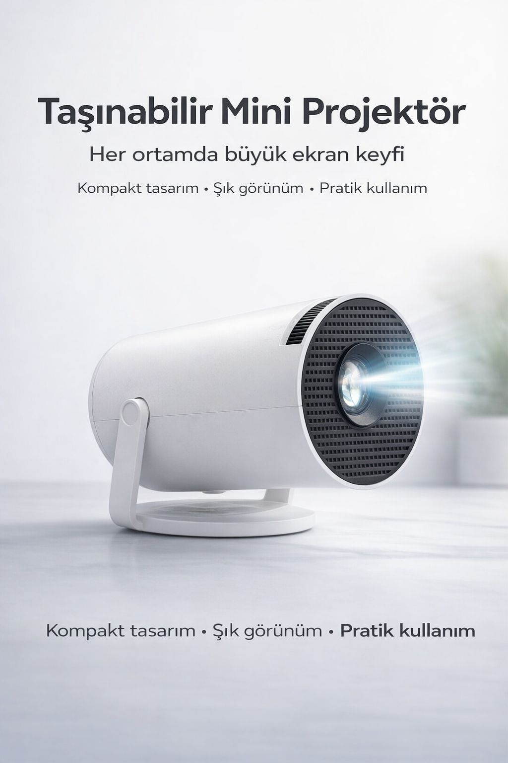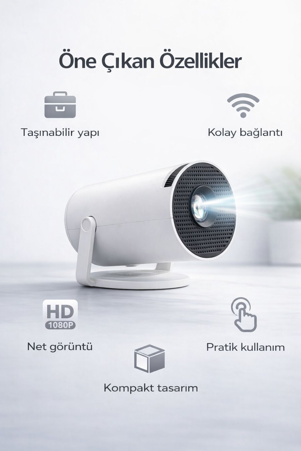 Taşınabilir projeksiyon cihazı, kompakt yapısı sayesinde çantanızda kolayca taşınabilir ve her ortamda hızlı kurulum imkanı sağlar. Ev sinema projeksiyon cihazı, mini projektör, cep projeksiyon cihazı ve kablosuz projeksiyon cihazı arayan kullanıcılar için en pratik çözümlerden biridir.